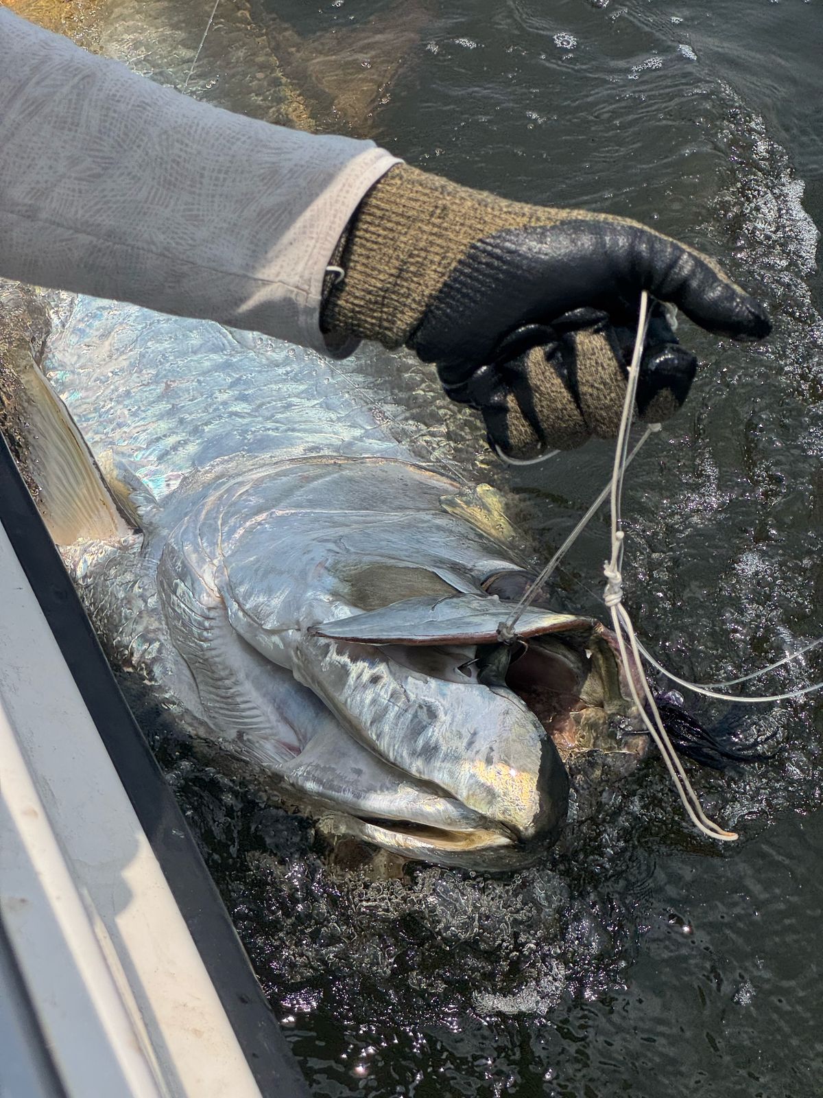 Fishing at Skimmer Island is emblematic of this stretch of West African coastline wild, untamed, and packed with hard fighting game fish. While the primary focus is on what could be the largest tarpon on the planet, anglers also have the opportunity to target a variety of iconic species, including powerful Jack Crevalle, aggressive Cubera Snapper, elusive Tripletail, and other prized West African game fish. Though secondary species may not be as abundant as in some other regions along the coast, the fishery has seen a remarkable resurgence. Since taking over the area, we have worked closely with local communities to remove nets and implement conservation efforts, leading to a drastic increase in biomass and overall fish numbers. This commitment to sustainability is transforming Skimmer Island into an ever-improving, worldclass fishery.